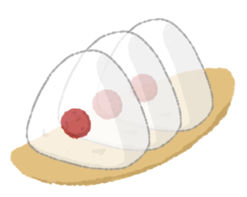 - シースルーな梅のおにぎり(3個)のイラスト